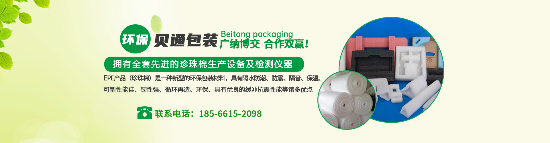 東莞市貝通包裝有限公司位于東莞市常平鎮(zhèn),交通便利。是一家集設(shè)計、生產(chǎn)、銷售、服務(wù)于一體的實體企業(yè),主要生產(chǎn)有:EPE珍珠棉,珍珠棉片材,貼合珍珠棉,珍珠棉異型材,成型珍珠棉等包裝產(chǎn)品。EPE產(chǎn)品(珍珠棉)是一種新型的環(huán)保包裝材料,具有隔水防潮、防震、隔音、保溫、可塑性能佳、韌性強(qiáng)、循環(huán)再造、環(huán)保、具有優(yōu)良的緩沖抗震性能等諸多優(yōu)點(diǎn),亦具有很好的抗化學(xué)性能。是傳統(tǒng)包裝材料的理想代替品。公司生產(chǎn)的產(chǎn)品符合ROHS要求,廣泛應(yīng)用于汽車、電子、玩具、五金、手袋、家具、電鍍、LED燈飾、玻璃制品、陶瓷、工藝品、醫(yī)療器材、凈水器、多媒體、家電、通訊設(shè)備等行業(yè)的各種形狀產(chǎn)品的包裝公司現(xiàn)有自己的設(shè)計團(tuán)隊、品質(zhì)部、銷售團(tuán)隊、運(yùn)輸團(tuán)隊、生產(chǎn)管理團(tuán)隊,擁有全套先進(jìn)的珍珠棉生產(chǎn)設(shè)備及檢測儀器,配合科學(xué)的管理,為產(chǎn)品質(zhì)量提供強(qiáng)有力的保證,公司始終秉承“顧客至上,品質(zhì)優(yōu)良,信譽(yù)為本”的經(jīng)營宗旨!竭誠為廣大客戶朋友們服務(wù)!